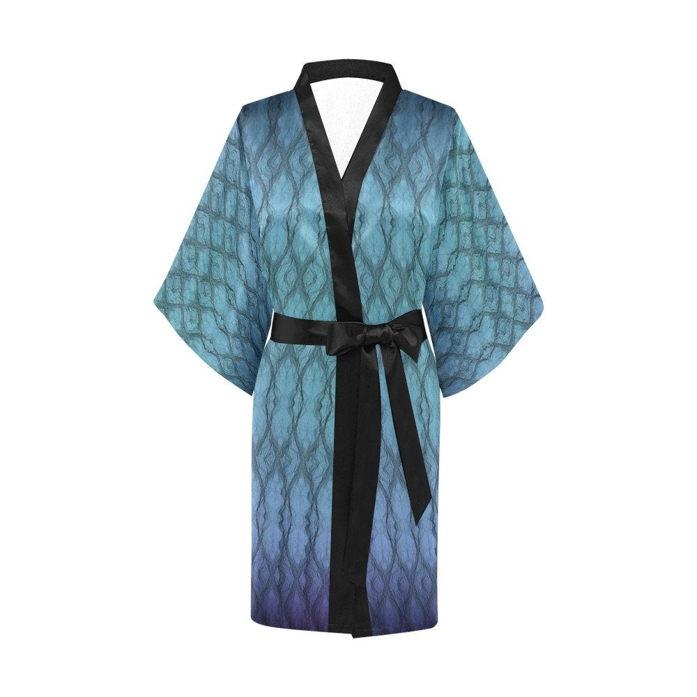 2 Tone Turquoise Short/Long Sleeve Kimono bathrobe,sleepwear,halloween,partywear,Gift For Her/Gf/Aunt/Mom/Birthday/Valentine/Graduation
