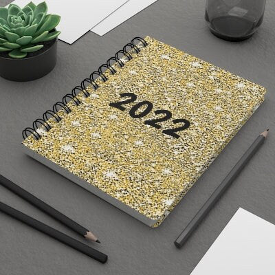 Kick off 2022 with a sparkle!! Write down your dreams in style on these cool spiral-bound journals. Personalize it with a cool design to make them shine. These notebooks feature a thick gloss full-color laminated protective cover that is much more durable than the average flimsy paper covers. Made in the USA, the journal comes in 5x7 size with 75 pages of lined paper.