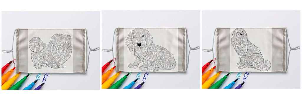 3-Style Doggy DIY Kit Coloring Face Mask with a Pack of 8 Coloured Fabric Textile Markers, Thoughtful Funny Valentine's Gift