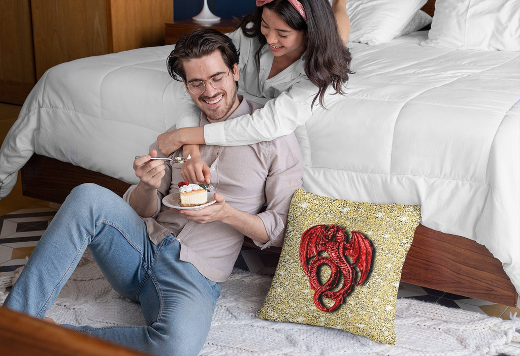 3D Gold Lucky Dragon Cushion Cover, Gift for Birthday/New Year/Housewarming/Graduation/Valentine/Wedding/Couple/Halloween,GOT Dragon Lovers