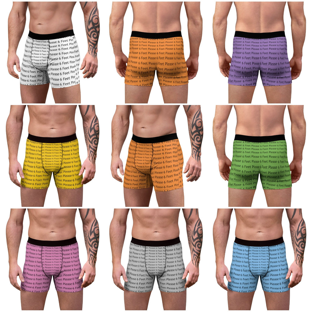 Brighten up your Stay at Home with this Men's Boxer Briefs with 6 feet please Anti-covid slogan, in lightweight fabric, various colors and various sizes.