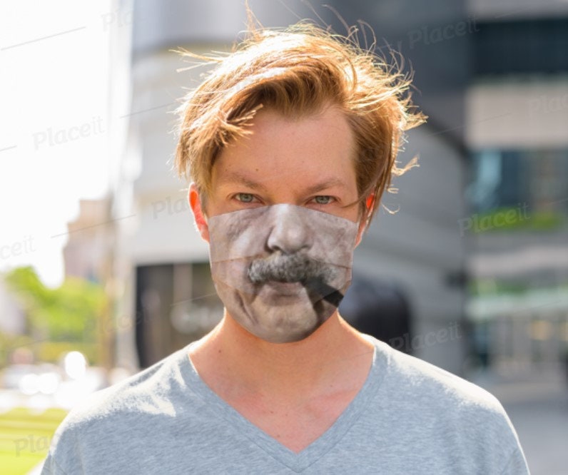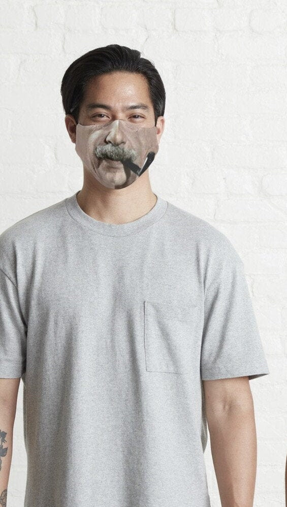 Make everyone smile with this unique Albert Einstein Pipe & Moustache Face 3D Printed Realistic Expression Unisex Fabric Mask for Light, Medium and Dark skin,Washable Reusable 2 layer or 3 layer Polyester Cloth, with fitted nose wire and adjustable straps with beads in the Premium style only.