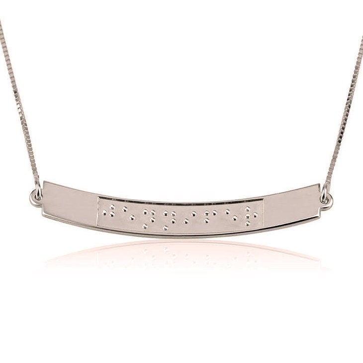 Braille name/text jewelry,Curved Braille Pendant,925Silver,24K/Rose Gold Plating,Christmas/Thanksgiving/Valentine/Birthday/Anniversary/Grad