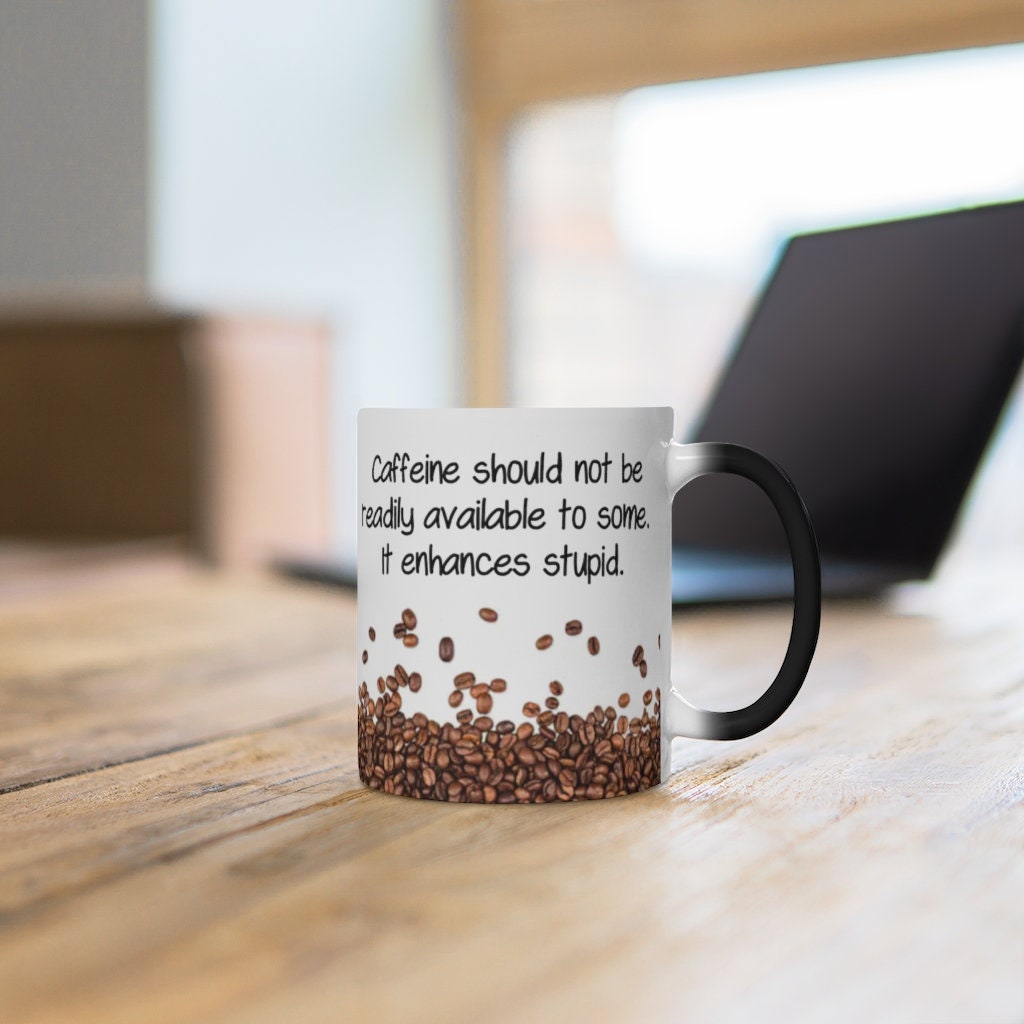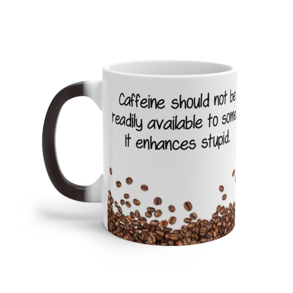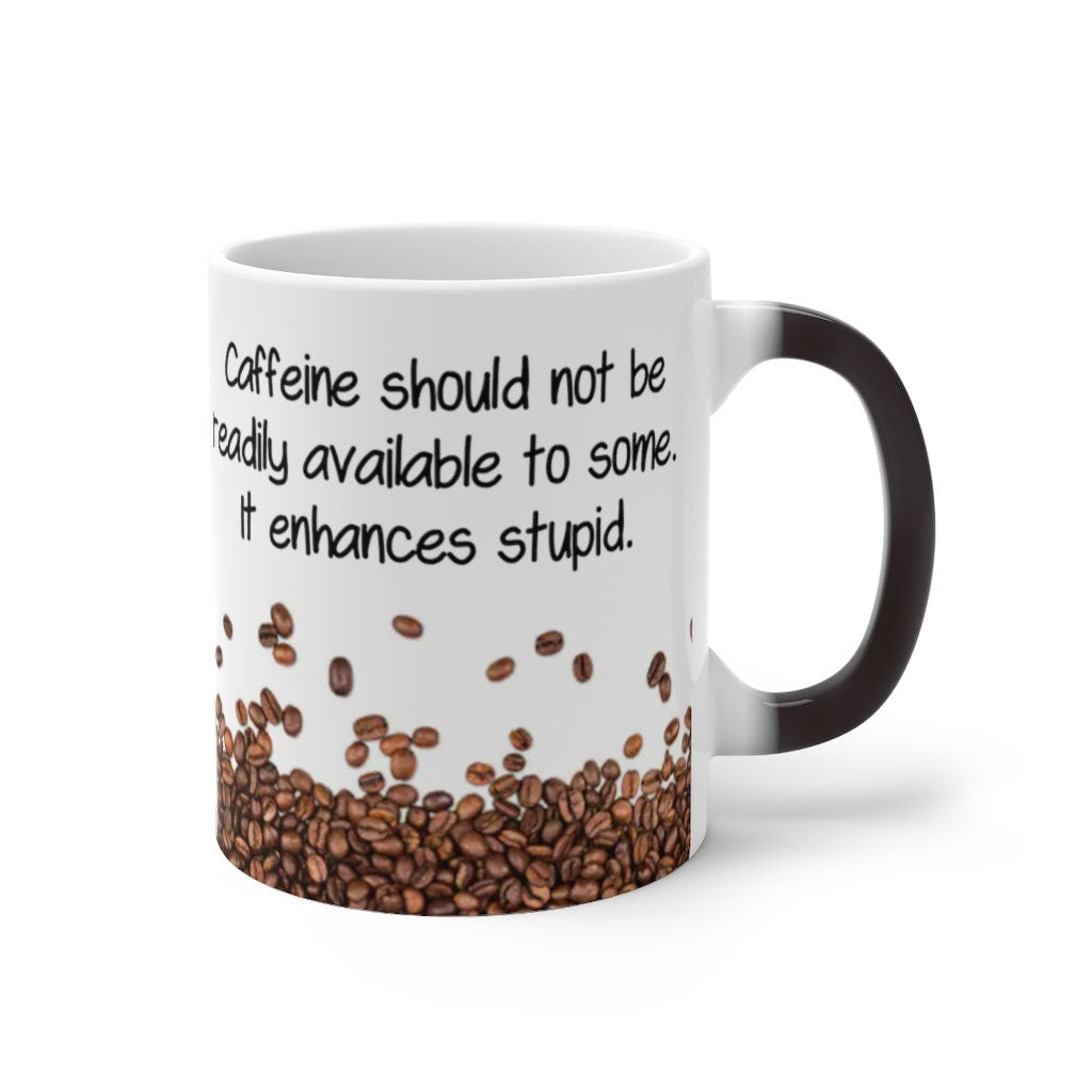 Caffeine Enhances Stupid, Funny Jokes Mug,Sarcastic Quotes Mug/Printed Normal/Magic Mug/Color Changing Ceramic Mug,Microwave safe, Cool Gift