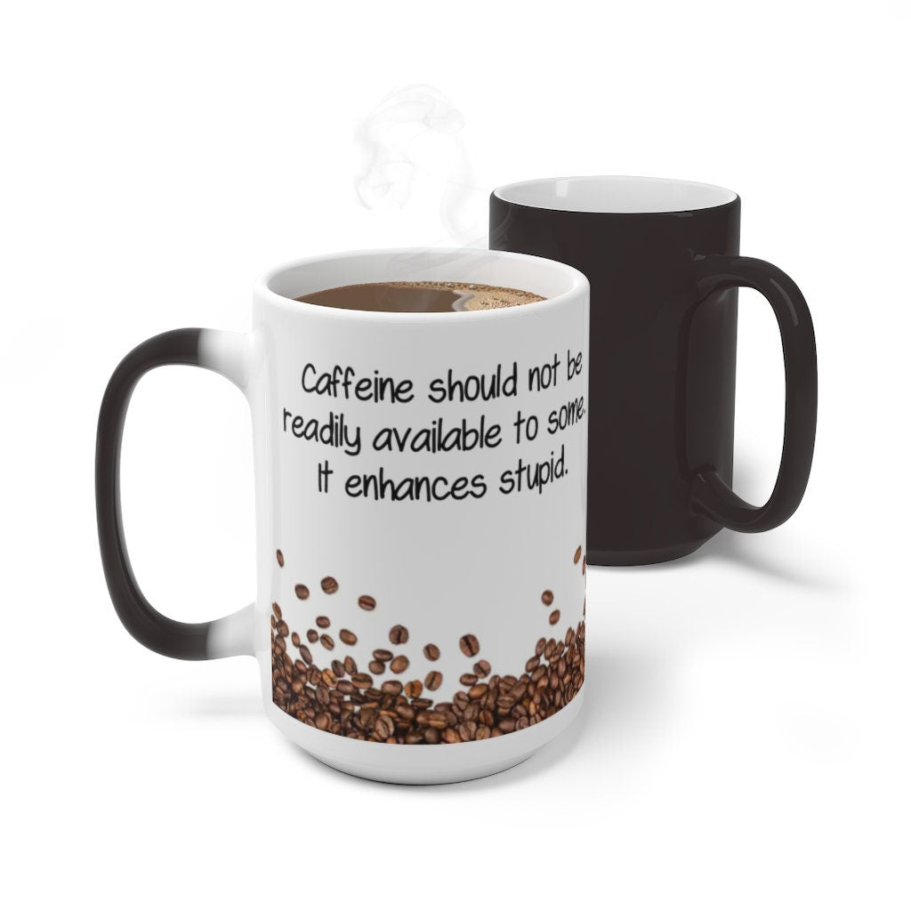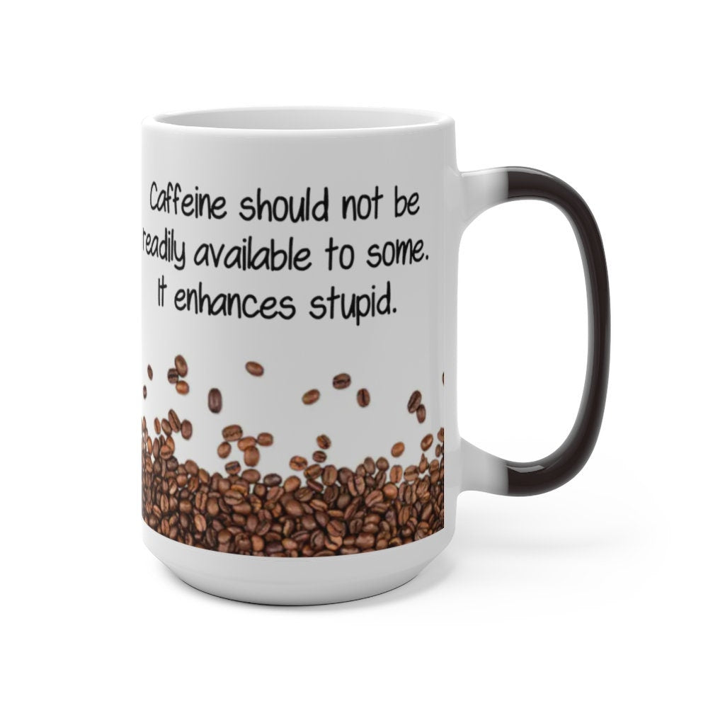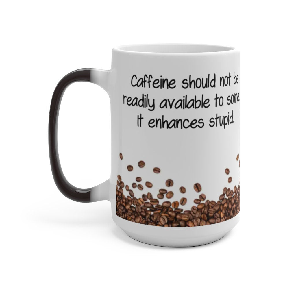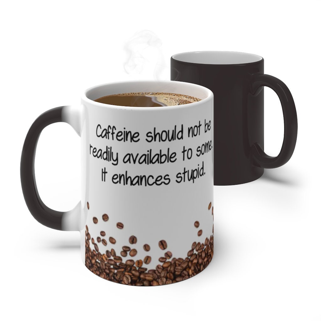 Caffeine Enhances Stupid, Funny Jokes Mug,Sarcastic Quotes Mug/Printed Normal/Magic Mug/Color Changing Ceramic Mug,Microwave safe, Cool Gift