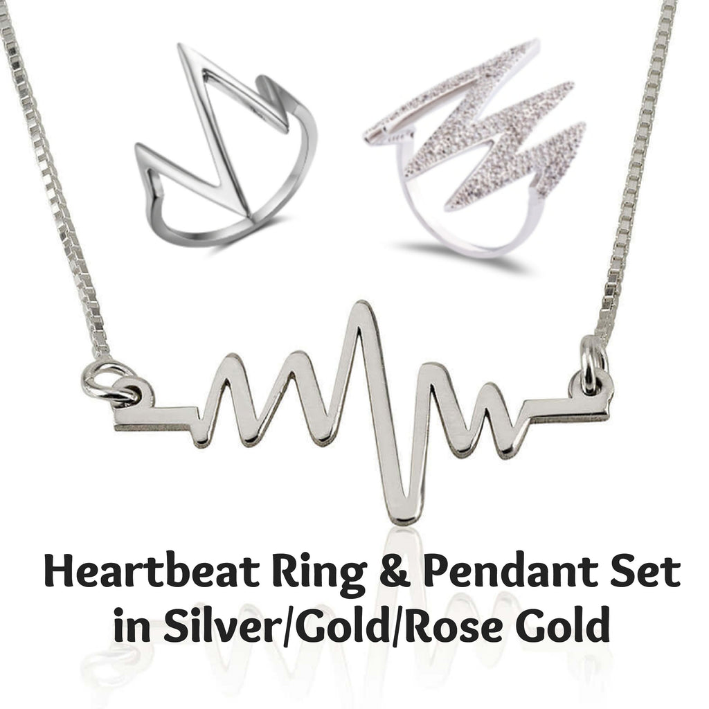 Heartbeat Ring without Zirconia, Matching pendant available as a set. Perfect Valentine's Day gift.