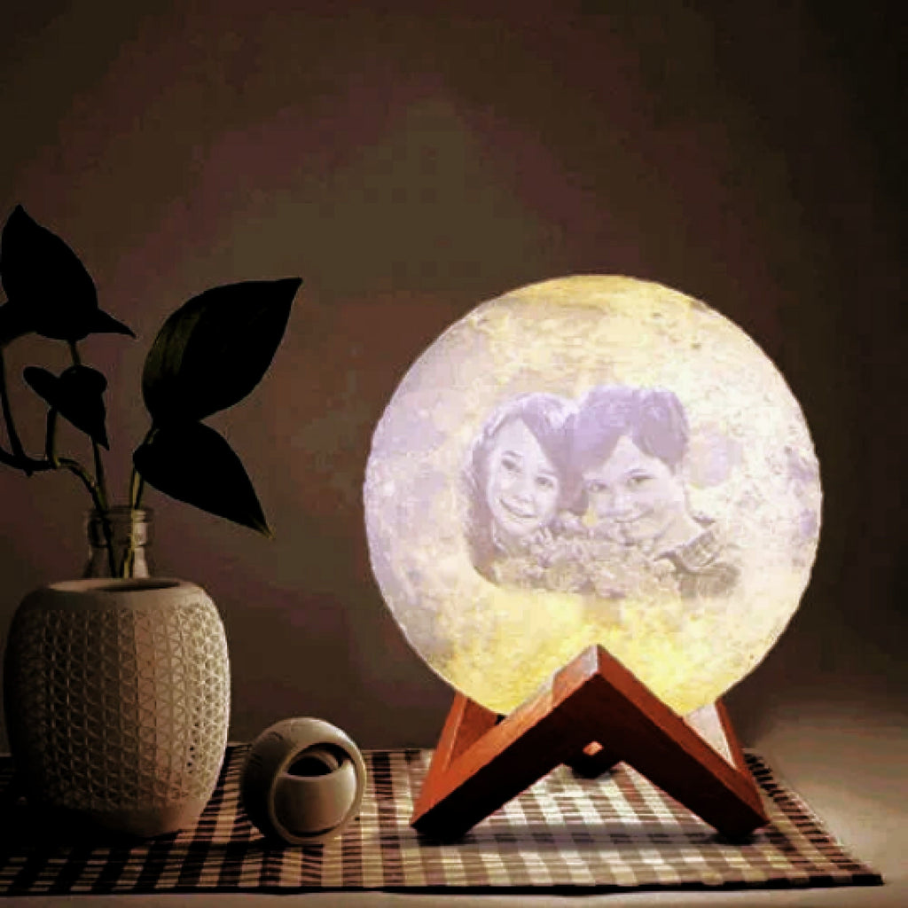 Personalized gifts - Custom Photo/Text Engraved Moon Lamp in various sizes. Engrave your own photo and words onto this unique moon textured lamp for the perfect gift for yourself or your loved ones for any occasion.