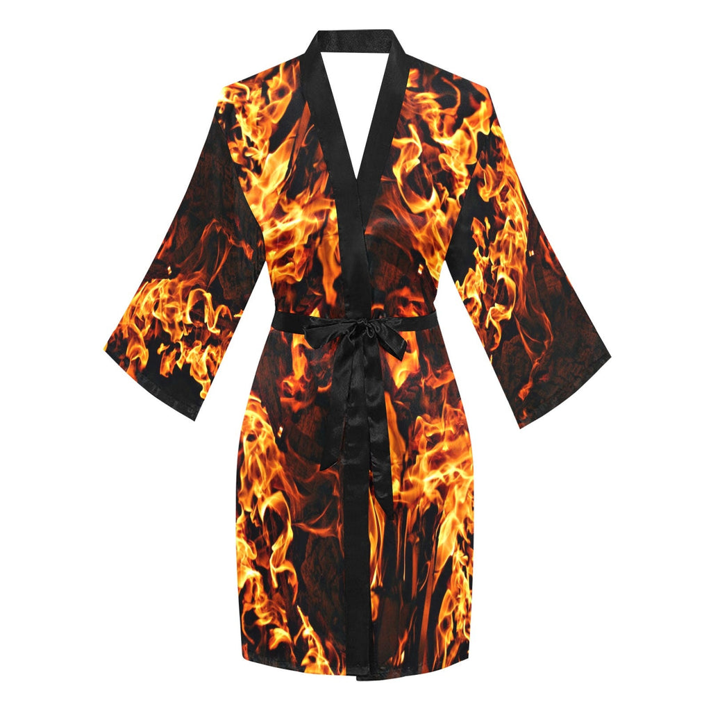Fire flames LgSleeve Kimono Casual bathrobe,sleepwear,halloween,partywear,Gift For Her/Girlfriend/Aunt/Mom/Birthday/Valentine/Graduation