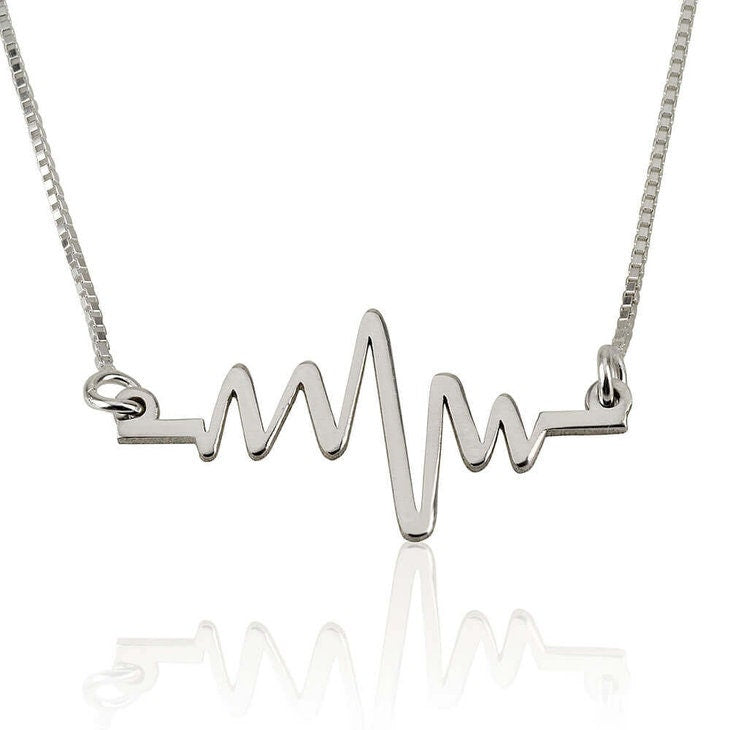 Your heart will race at this trendy simply breathtaking heartbeat pendant necklace with or without your initials included as an option. It is truly the cutting edge and trendsetting accessory for a unique and timeless necklace you can wear with any looks and make a stunning statement with this heartbeat design to truly capture your personality.