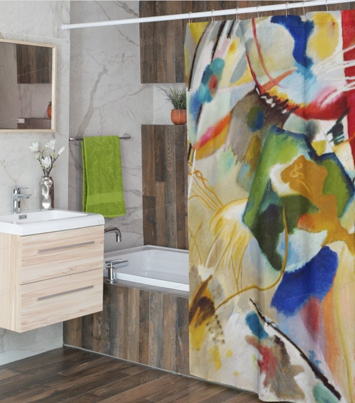 Show off your high taste in abstract art with this Kandinsky printed art shower curtain. Suits any bathroom decor for a minimalist and modern art decor look.