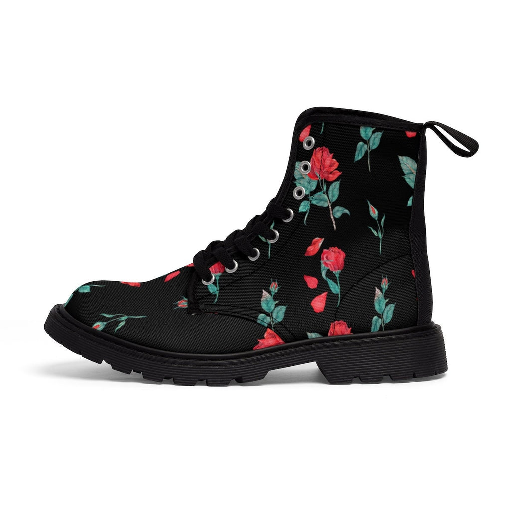 Kid/Adult size Roses on Canvas Boots,Casual/Hiking,Gift for Christmas/Thanksgiving/Birthday/His/Hers/Couple Gifts,Graduation/Valentine Gifts