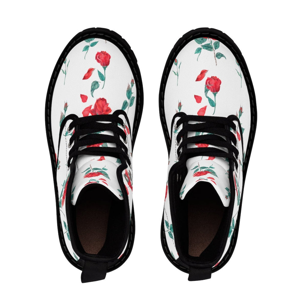 Kids/Adults Roses on White Canvas Boots,,Gift for Christmas/Thanksgiving/Birthday/His/Hers/Couple Gifts,Graduation/Valentine Gifts