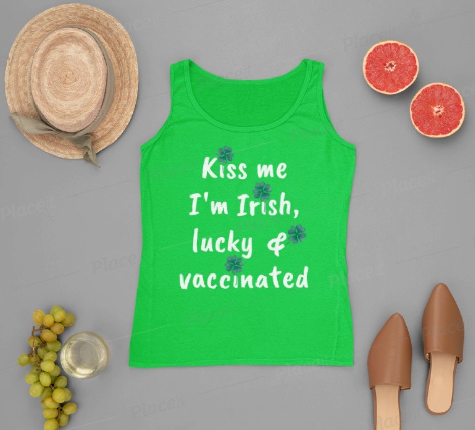 Funny Kiss Me I'm Irish tank top makes a great St Patrick's Day gift for Women.