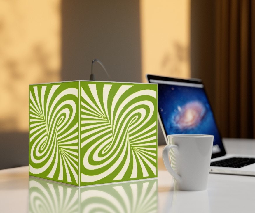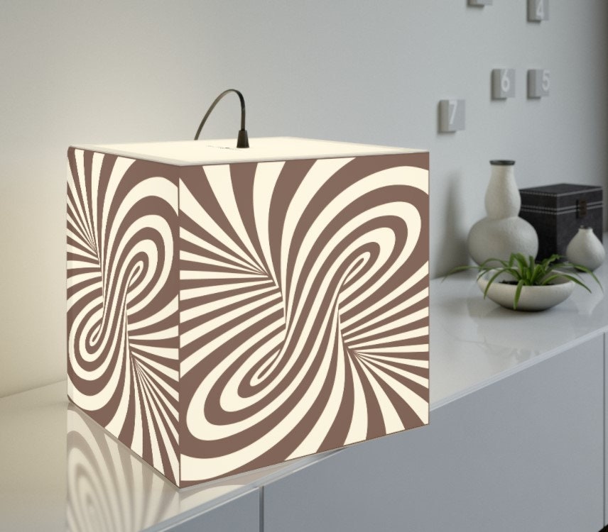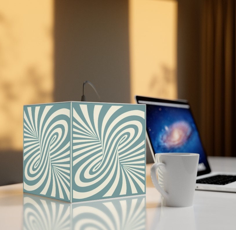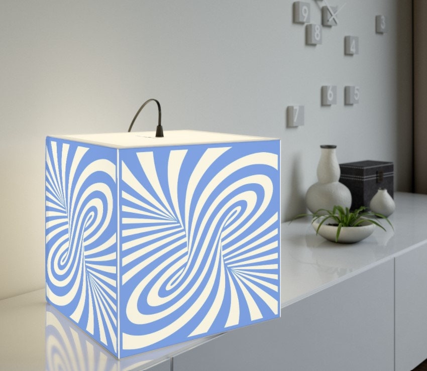 Linear Optical Illusion,Psychedelic/Hypnotic Art Printed Square Cube Lamp/Contemporary/Modern/Trendy Light/Home Decor Gifts,Stackable Lights