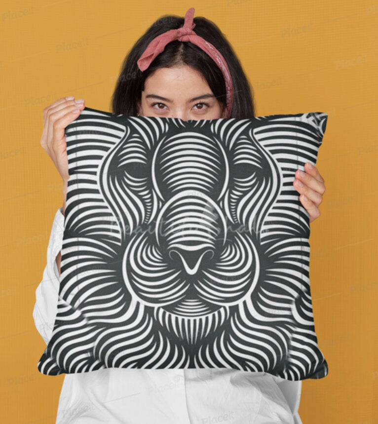 Lion Face optical illusion Cushion & Cover in Linen, Suede, Satin, home decor gifts, Christmas,Thanksgiving/Housewarming/Birthday/Graduation