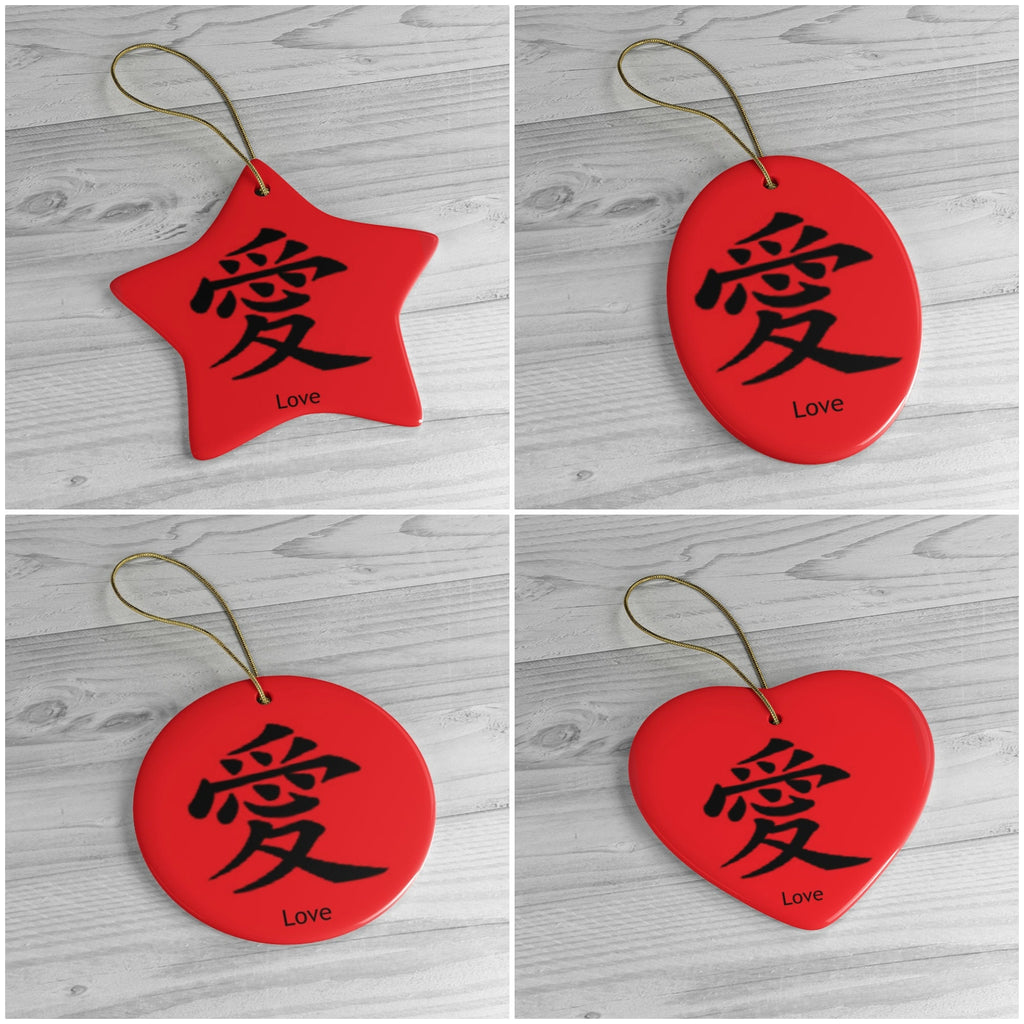 Available in different shapes and in Christmas/Lucky red as individual ornaments with one Chinese character on one side. Take your pick and choose your shape and symbol preference when you order. See other listing for a combo of symbols in one ornament.