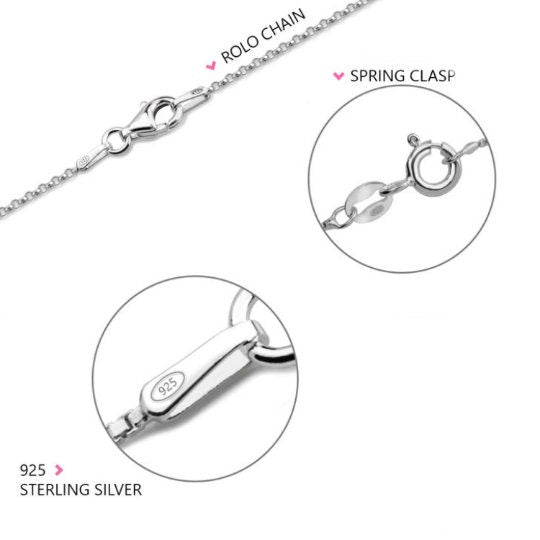 Available in 925 Sterling Silver, 24k Gold Plating or Rose Gold Plating, they are paired with BOX chain/ROLO chain with a spring clasp.