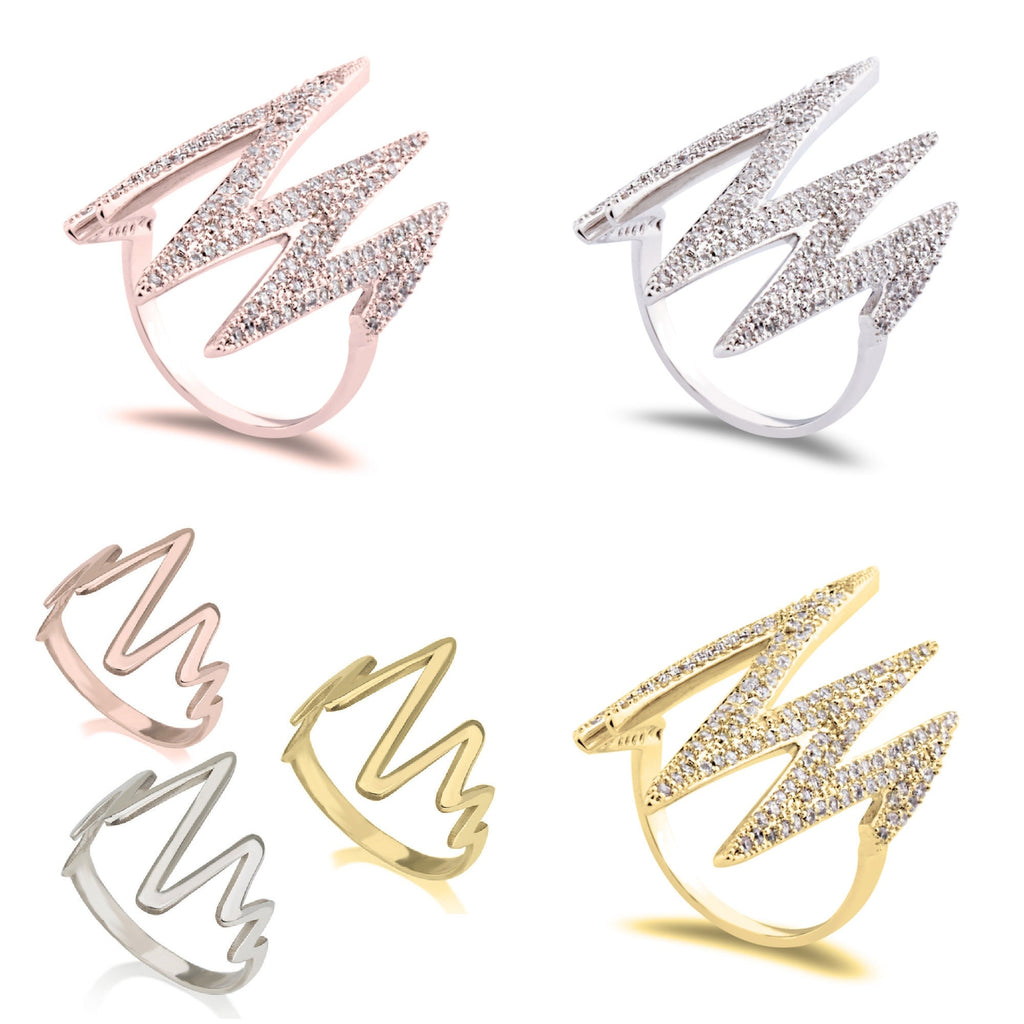 This quality Rose Gold, Sterling Silver and 24K Gold Plated band is intricately shaped into a timeless heartbeat pulse ring design, a chic and understated statement, with or without zirconia stones, and the perfect way to accessorize as the perfect layering piece or simply to wear alone.