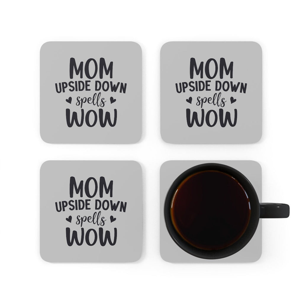 MOM is WOW Coasters 4pc Set,Round/Square/Leather/Cork,housewarming/Home gift,Mothers Day Gift,Birthday/Couples Gift,Graduation Gift