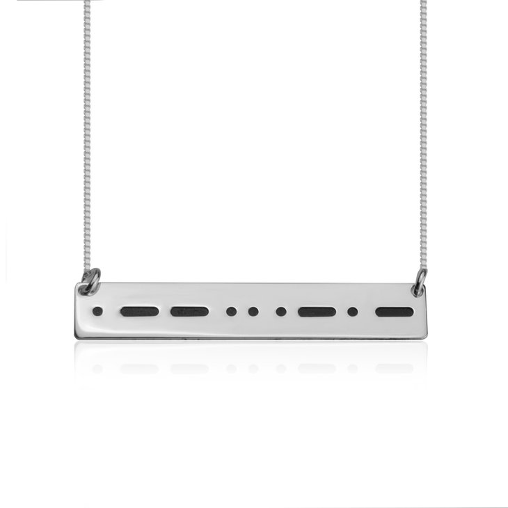 This horizontal bar necklace with Morse code engraving is truly the cutting edge and trendsetting accessory you've been looking for. Capture any meaningful secret message of your choosing, for a unique and timeless necklace you can wear with any looks and make a stunning statement.