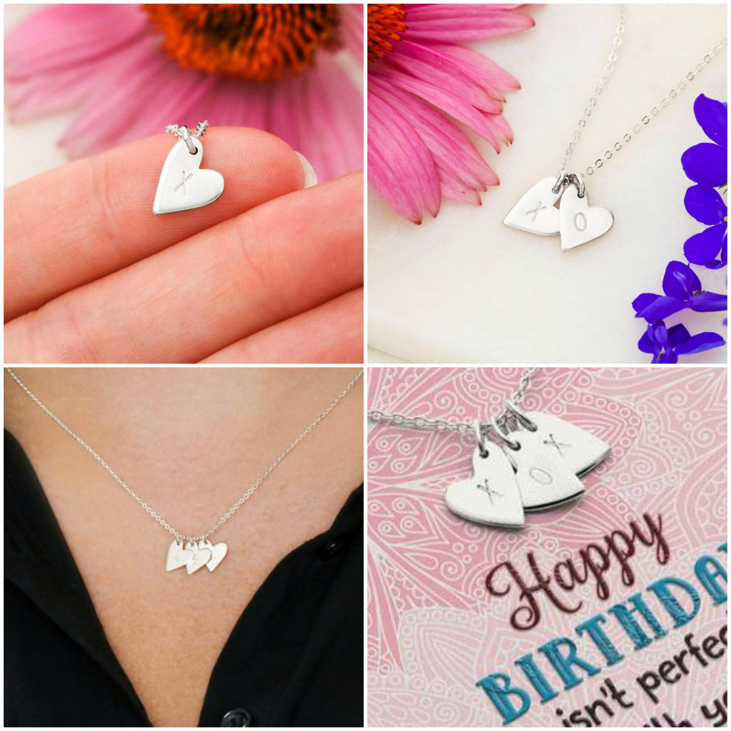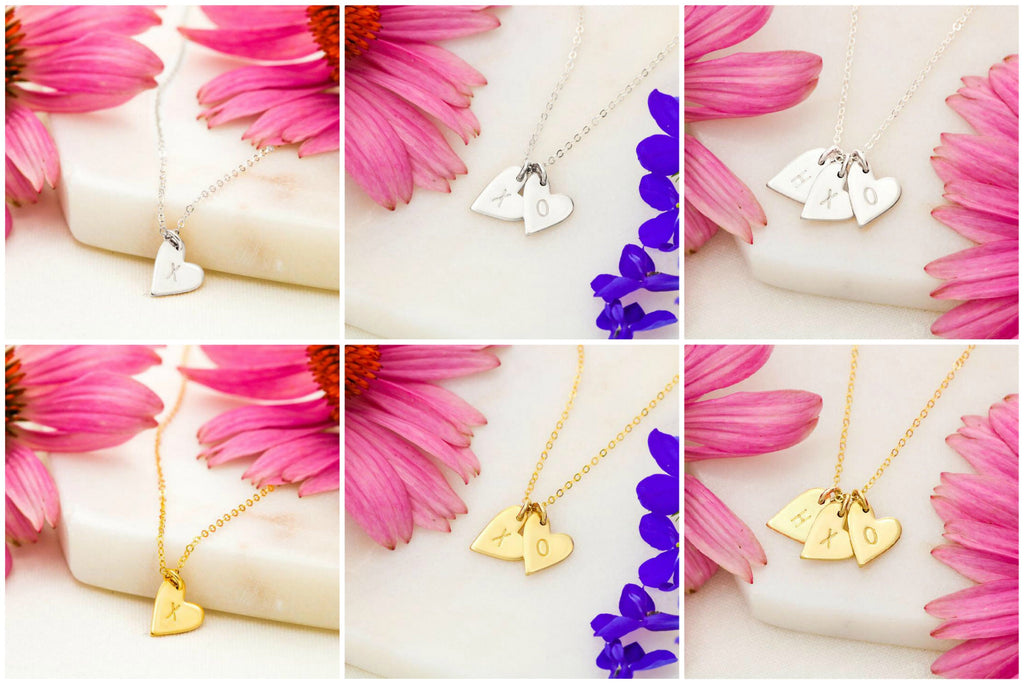 This sweet and dainty necklace with 1, 2 or 3 engraved hearts is a special way to make anyone feel loved! Imagine the look on her face when she sees the darling asymmetrical hearts with personalized hand-stamped letters on the face of the charms.