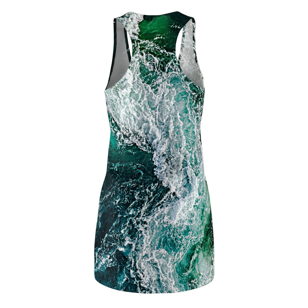 Ocean Waves 3D Print Women's Racerback Dress,Casual Athletic Sleeveless A-line tank,Gifts For Her/Girlfriend/Aunt/Mom,Birthday,Valentines