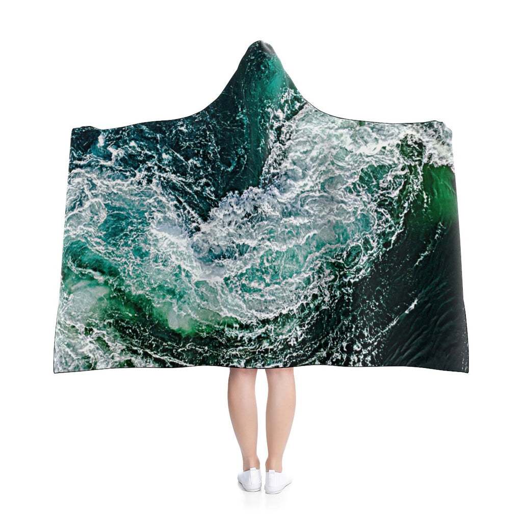 Ocean Waves Hooded Blanket, Christmas,Thanksgiving,Birthday,Valentine Gifts,Cape,Camping,TV-time/Fireplace Snuggler Gift, Realistic Blanket
