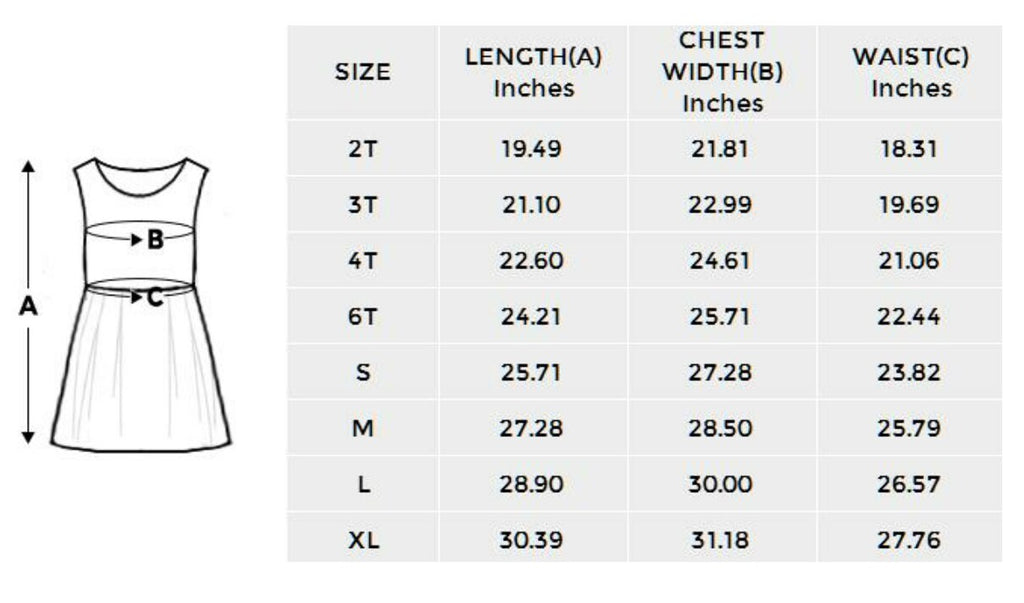 Sizes(flat measurement): 2T, 3T, 4T, 6T, S, M, L, XL.