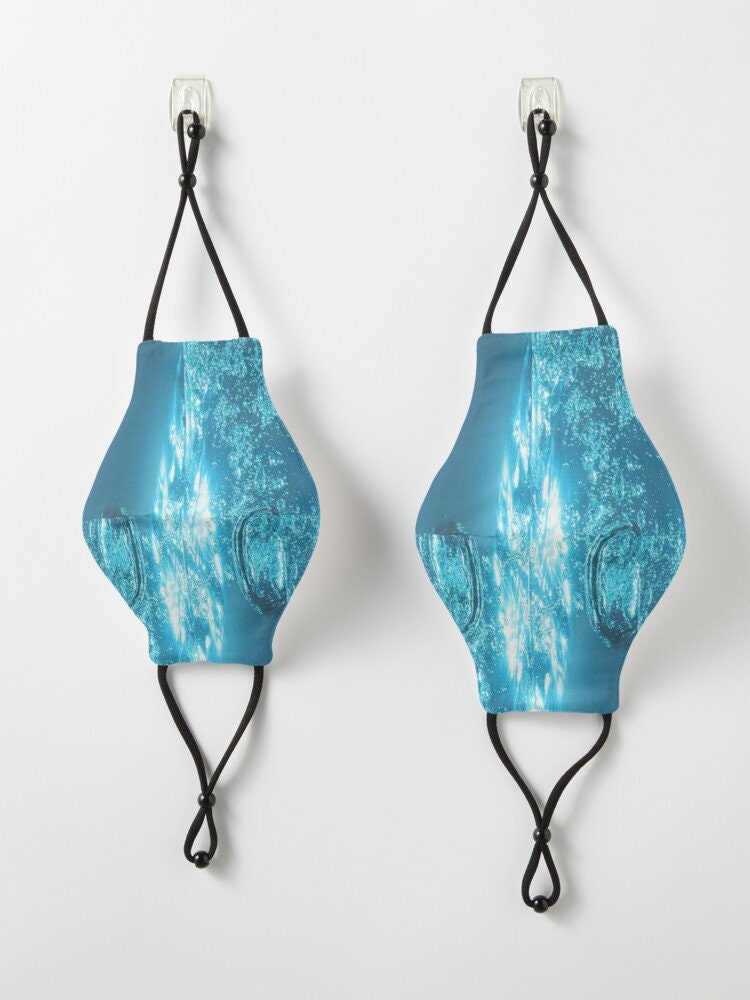 Materials: 2 layer polyester fabric, elastic earloops, 3 layer cotton, adjustable nonelastic straps with beads
