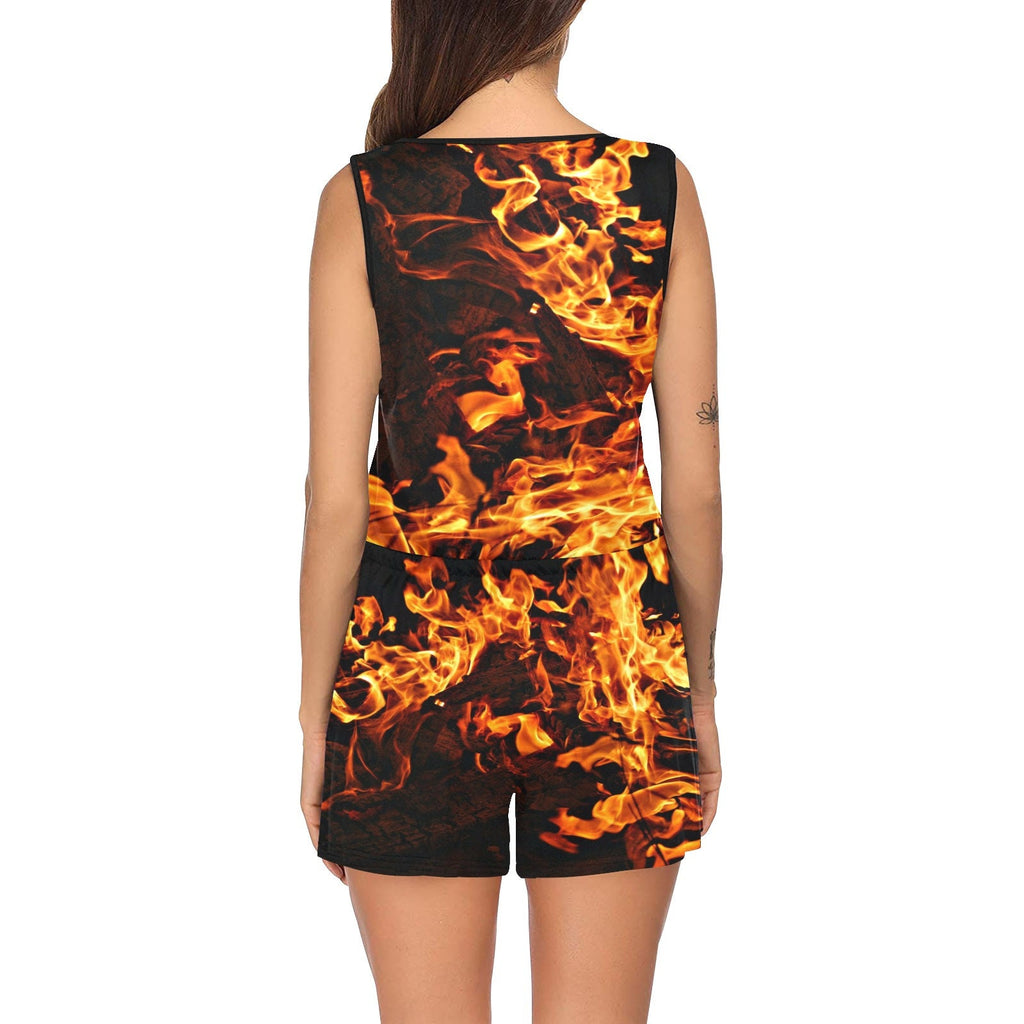 On Fire Flames Casual Jumpsuit, Hot Gift for Her/Wife/Girlfriend/Aunt/Birthday/Thanksgiving/Graduation/Christmas/Valentine/Halloween/Holiday