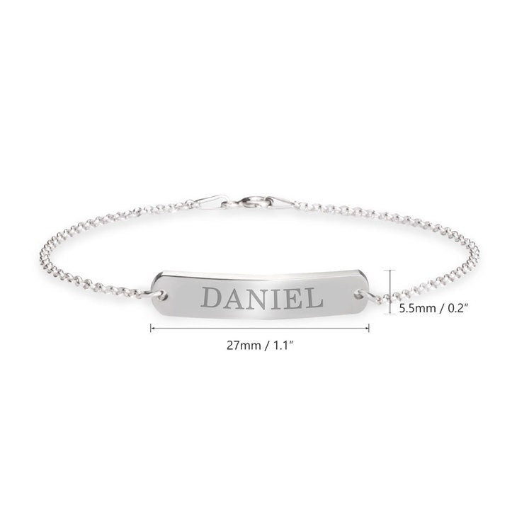 The perfect matching accessory if you've already got a bar necklace, this engraved name bar bracelet will allow your personality to shine through.