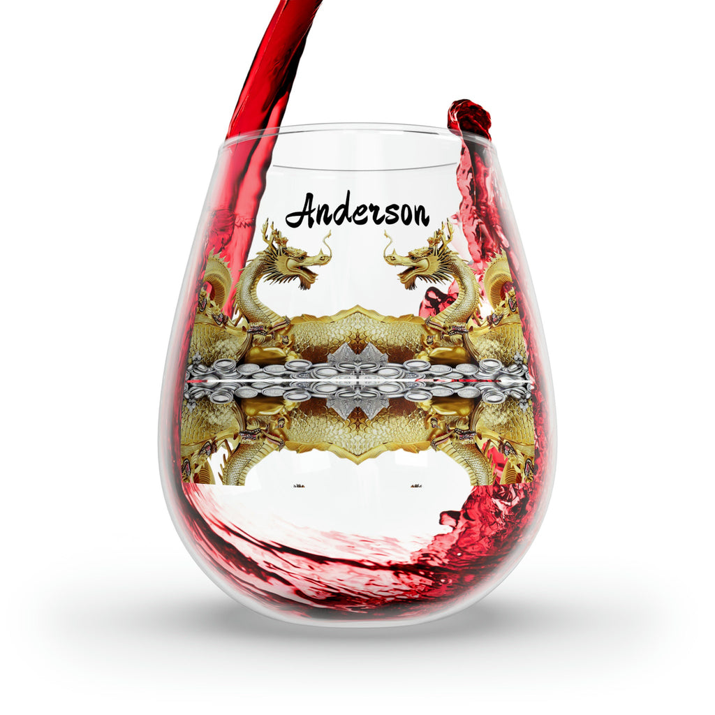 Personalized Double Dragon Wine Glass Name dragon monogram wreath 2024 Dragon lunar new year gift for christmas him her