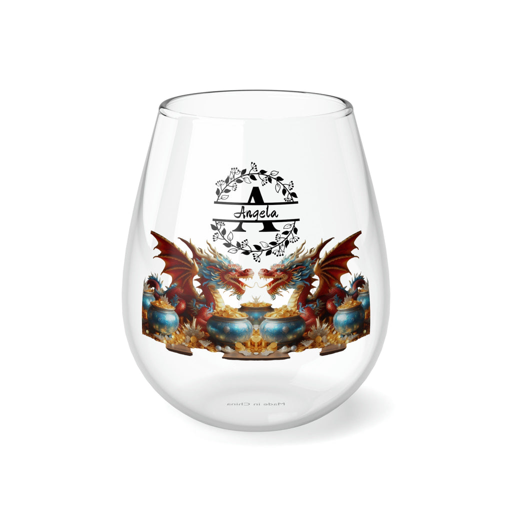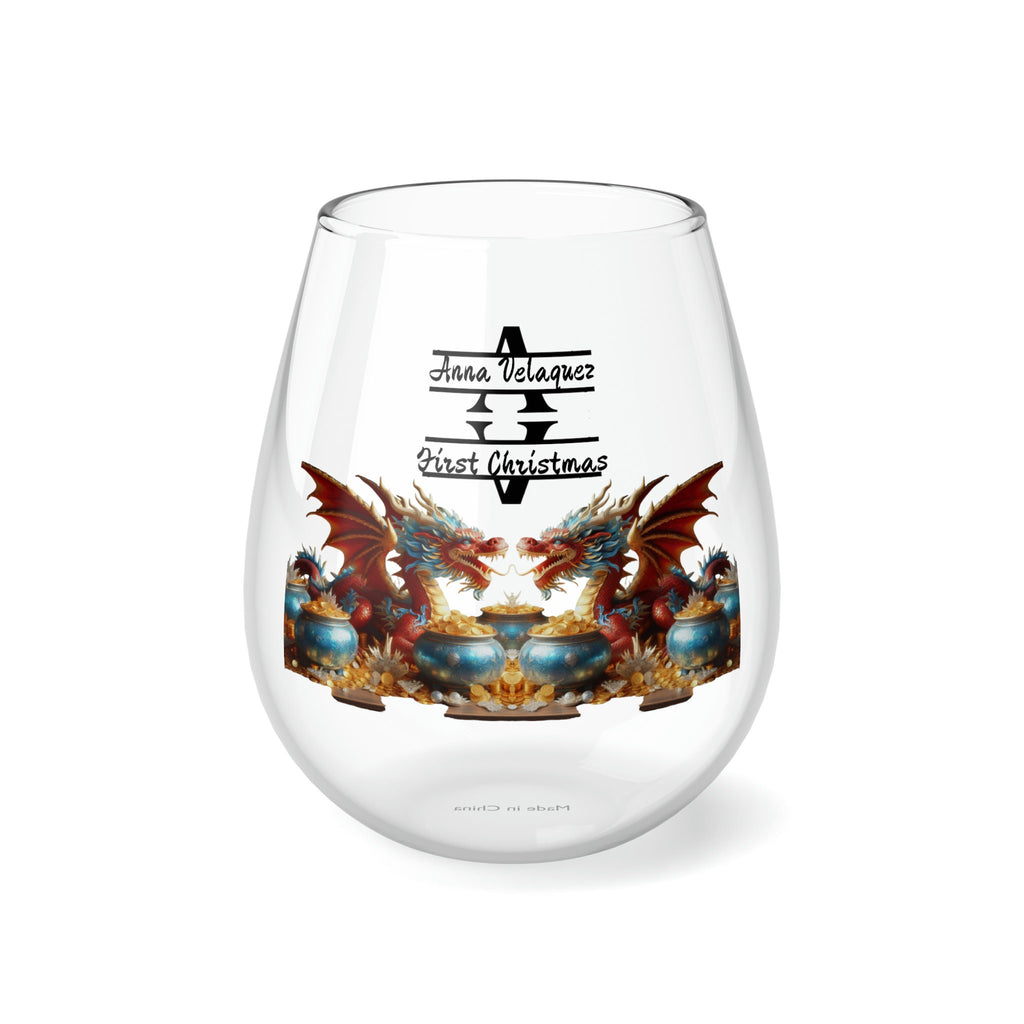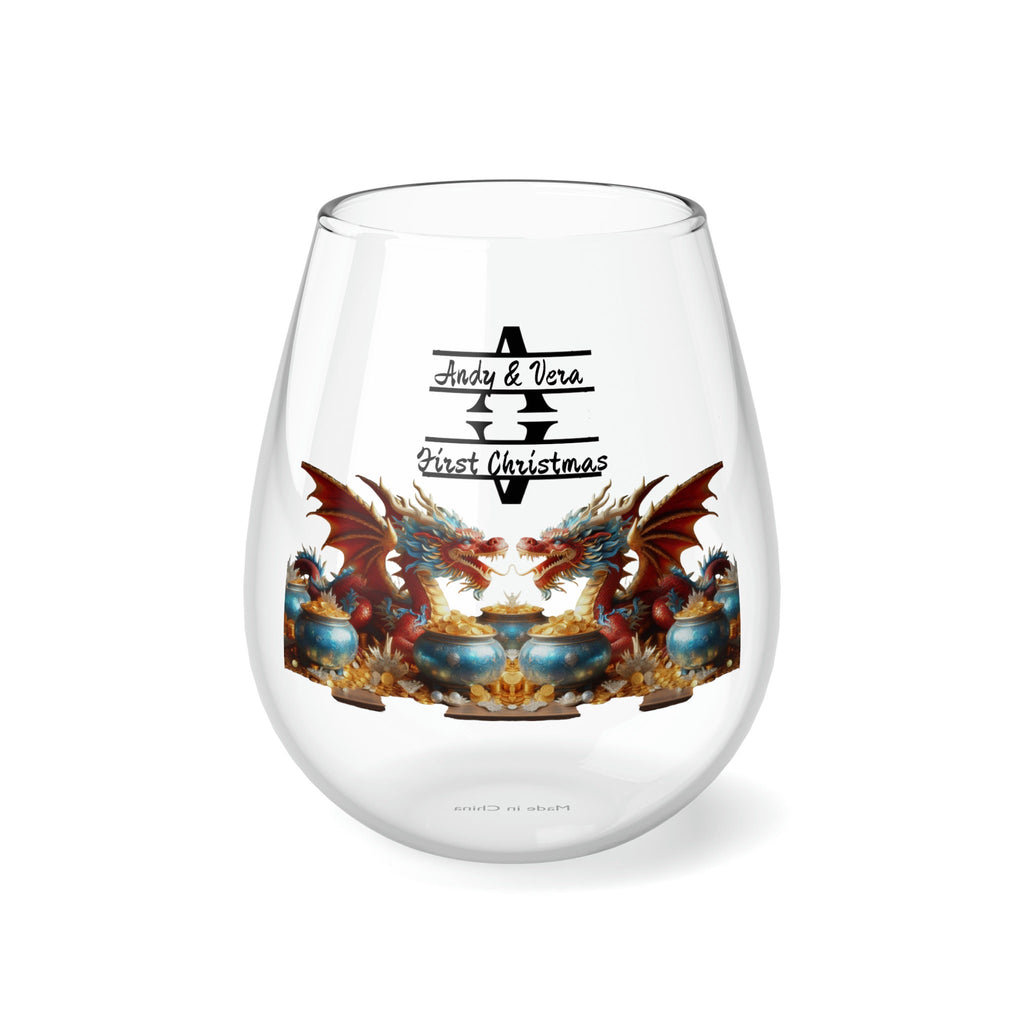 Personalized Double Name Dragon Wine Glass,newlywed gift custom glass,monogram 2024 Dragon lunar new year custom glass gift for christmas