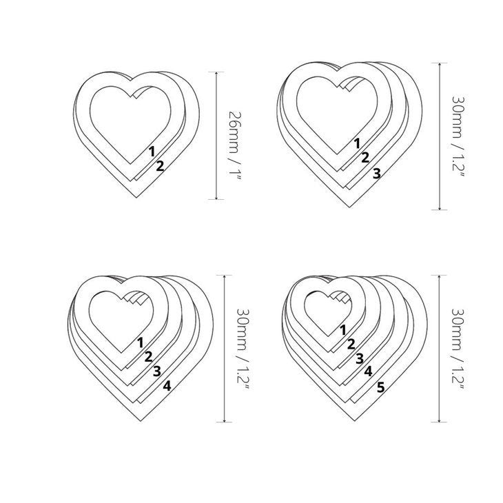 Pendant Size: The sizes are dependent on how many hearts are being ordered :