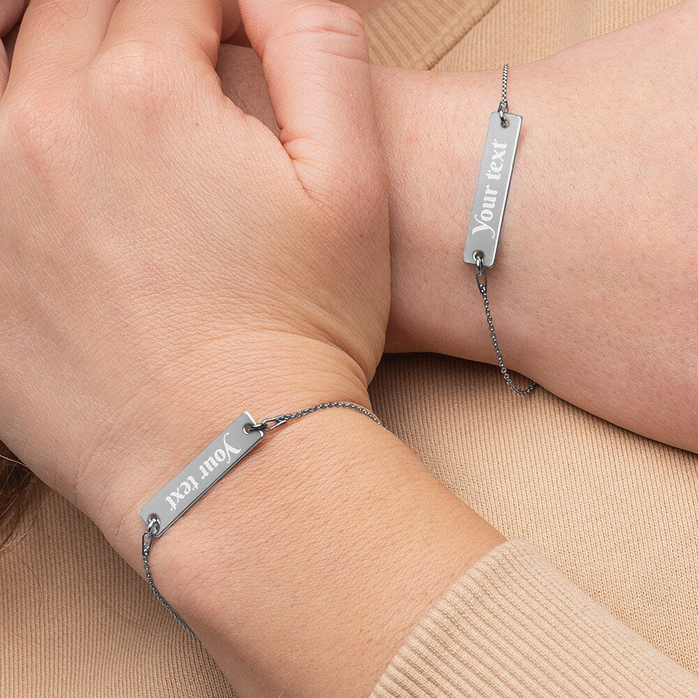 This engraved bar chain bracelet with a sterling silver pendant can become anything you want it to be, from a meaningful gift for a loved one to a sleek accessory for your own use. The sharp engraving won't fade for a very long time, making the bracelet a guaranteed favorite in anyone's jewelry box.