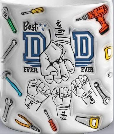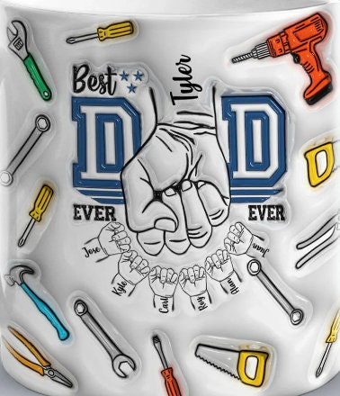 Personalized Handyman Dad Mug Kids 1-6 Names 3D ceramic Mug Father's Day Gift for Dad Husband Grandad UNCLE Brother BFF birthday gift