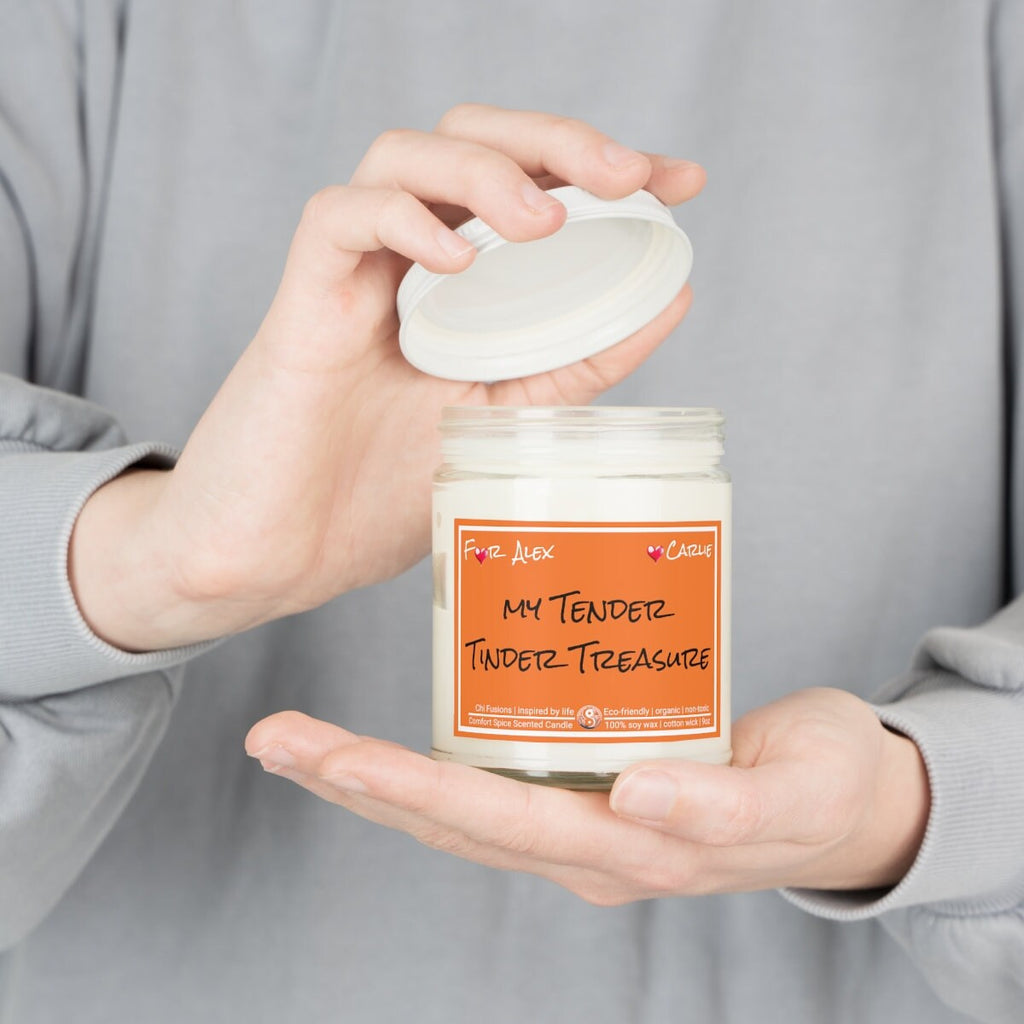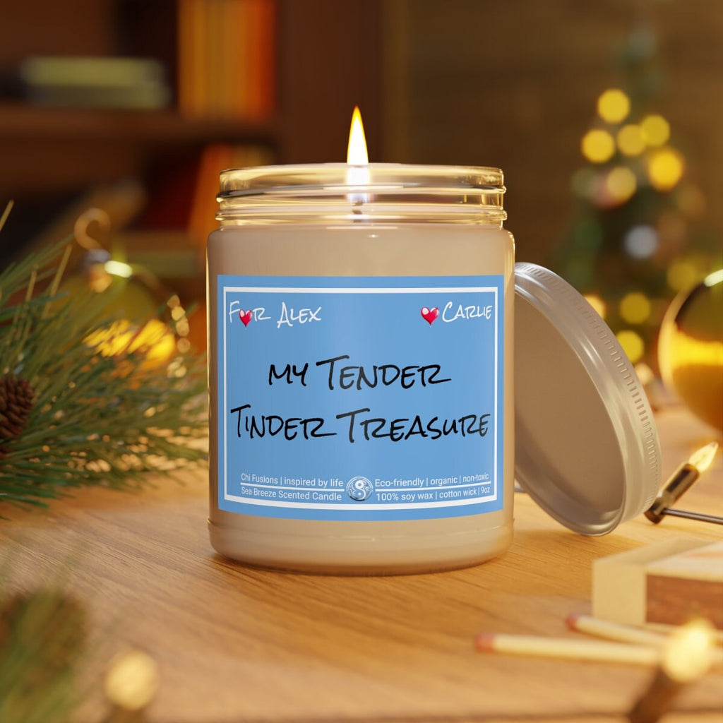 Personalized My Tender Tinder Treasure 9oz Glass Candle Valentine Day gift for boyfriend girlfriend,couple anniversary gift for husband wife
