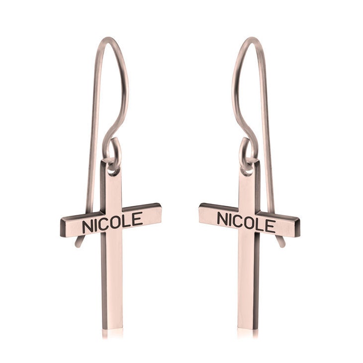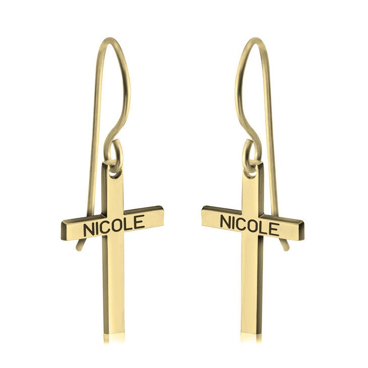 Personalized Name Engraved Cross EarRings,925 Silver,24K/Rose Gold,Mother's Day gift,Birthday gift,baby shower gifts,gifts for Her or Him