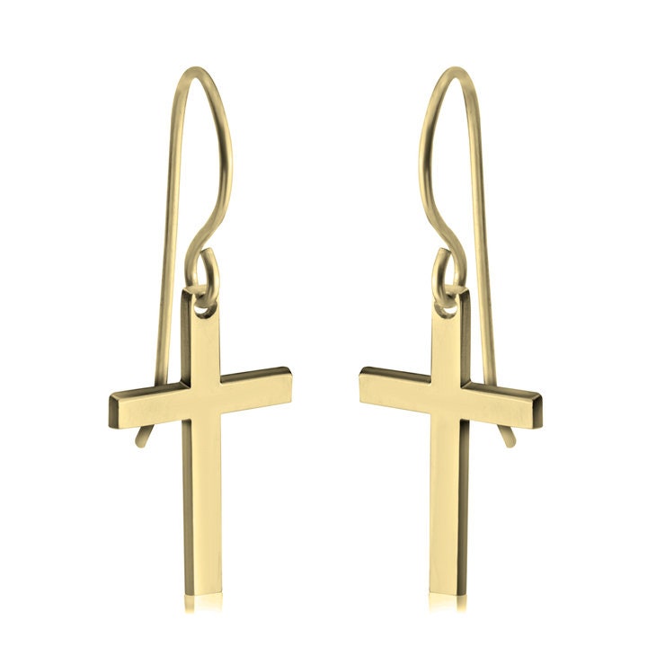 What a special gift in honor of any religious special occasion! These Cross Earrings are a staple for every faithful girl to have in her jewelry collection. A pair of elegant dangle Latin cross earrings, whose base stem is longer than the other three arms. With or without engraving.