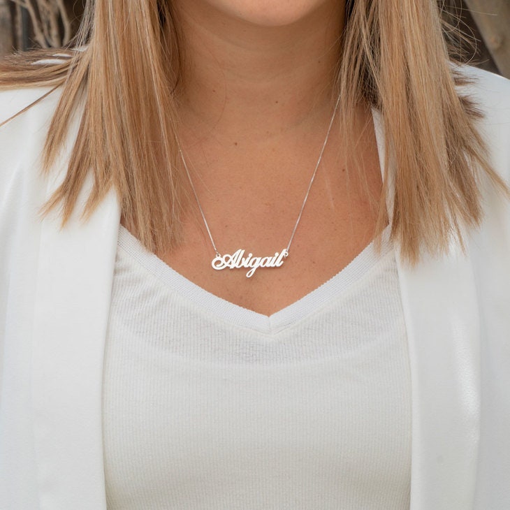 Our Classic Name Necklace is a bestseller with its simple and stylized classic font and three different sizes available to suit your style. Showcase your imaginative personality with this necklace, crafted from the finest solid Sterling Silver, 24K Gold Plating, Rose Gold, 14K Solid Gold and White Gold.