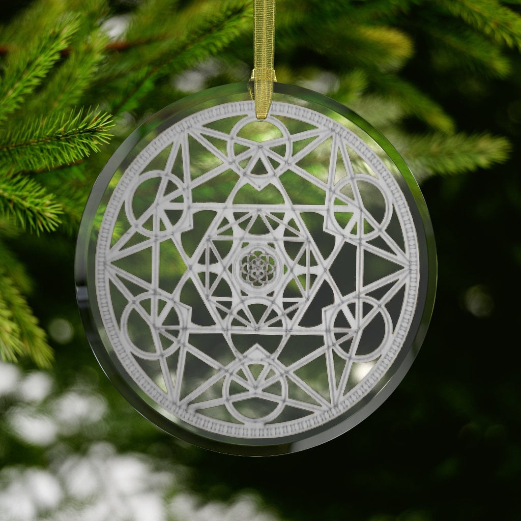 The Metatron Cube from Sacred Geometry is printed in silver or gold on glass/ceramic/pewter ornaments make great gifts for any occasion and Yoga/Meditation Room decor.