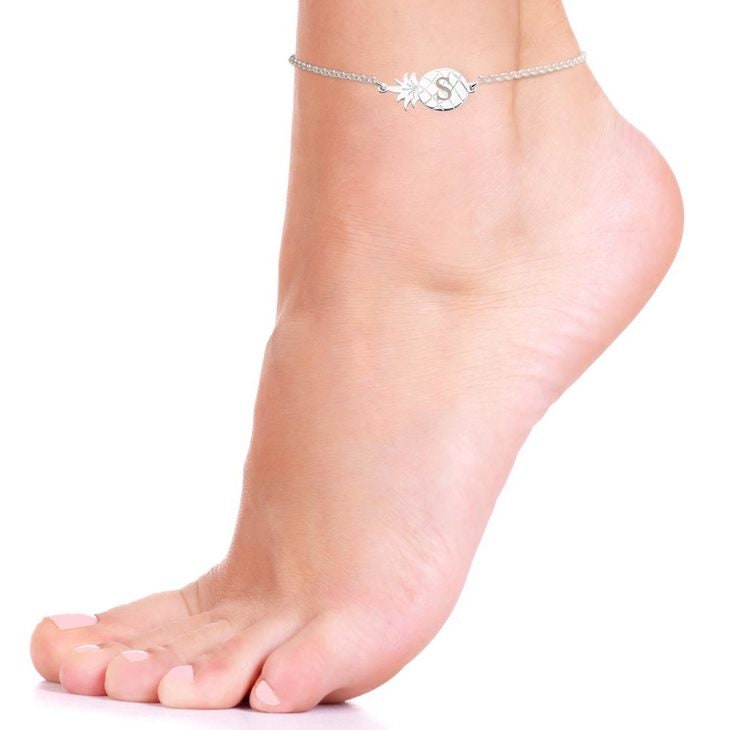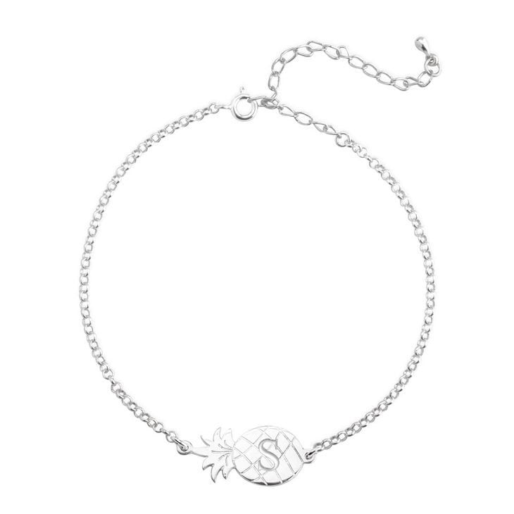 Pineapple Charm Initial Anklet,925 Silver, 24k Gold,Rose Gold,Mother's Day Gift,Birthday gifts for Her,Gifts for Mom,Mom Jewelry,Aunt Gifts