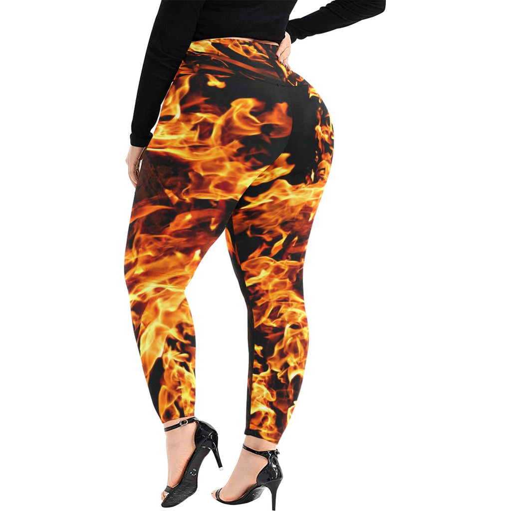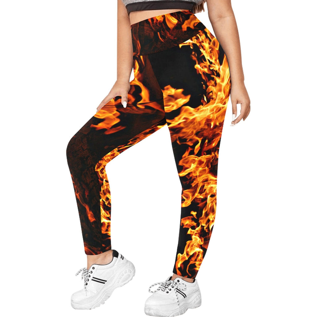 PlusSize fire flames High waisted Leggings,casual,gym/yoga/chill wear,chillout wear,Gifts for Her/Christmas/Thanksgiving/Birthday/Graduation