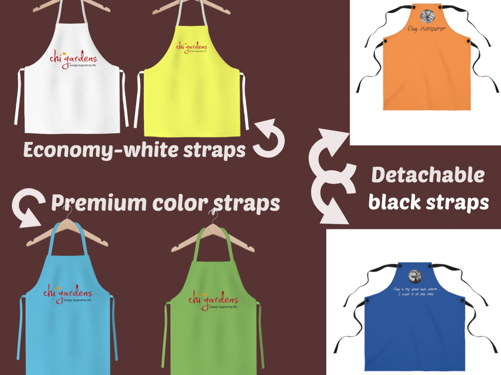 Customizable Aprons without pockets - Look cool without getting dirty. Perfect gifts for that potter /ceramicist/ studio artist/Chef/ Crafter/ Hobbyist friends you know. Our Poly Twill or Classic Apron is a perfect pottery clay art studio accessory. Printed Pottery Clay Art Studio Apron for Potters/Artists/Chefs/Crafter/Hobbyists, Unisex/Unisize, various colors.