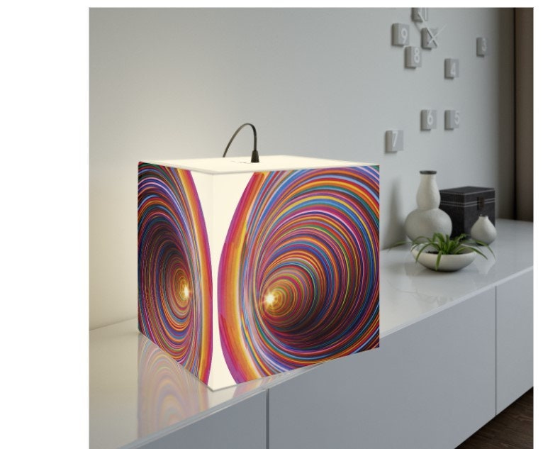 Rainbow Vortex Hypnotic,Optical/Psychedelic Art Printed Square Cube Lamp/Contemporary/Modern/Trendy Light/Home Decor Gifts, Stackable Lights