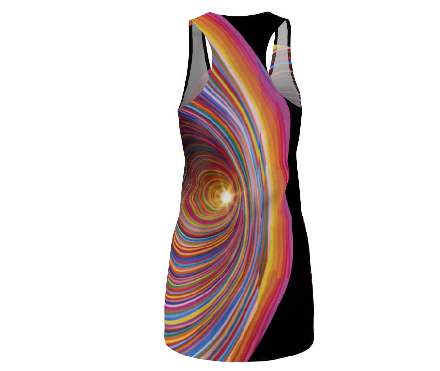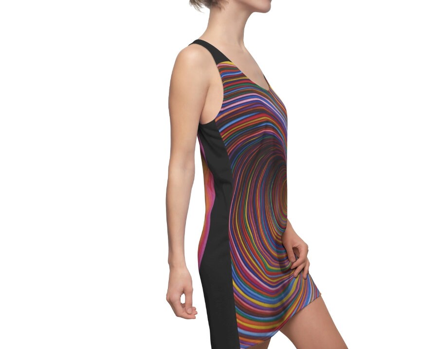 Rainbow Vortex Women's Racerback Dress, Optical illusion Art Dress, Sleeveless A-line dress, Gifts for Her, Op Art Dress, Cute Sporty Dress