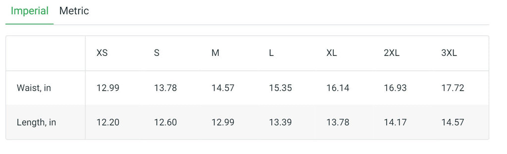 Size Guide: All measurements in the table refer to garment sizes in IMPERIAL
