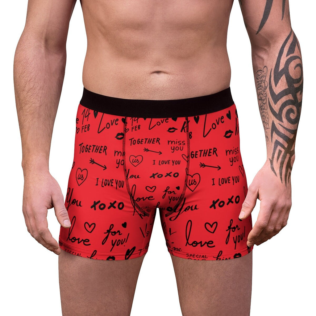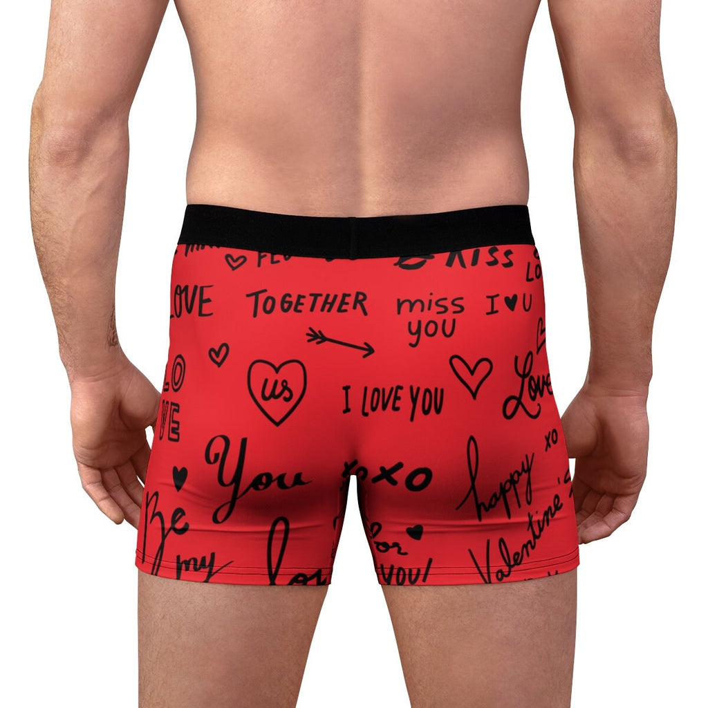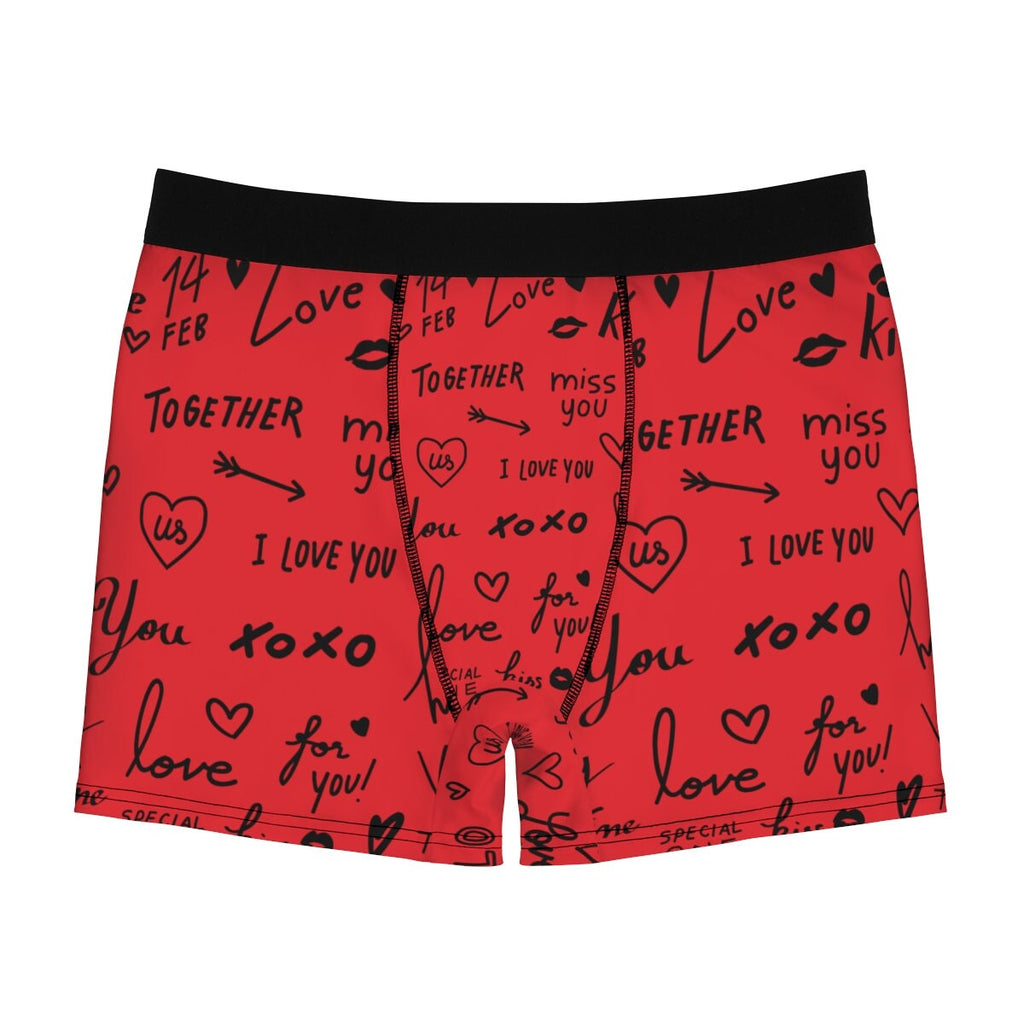 Red Black Love Notes Mens Boxer Briefs,Gift for Him/Christmas/Birthday/Engagement/Anniversary/Funny Gifts/Halloween/Thanksgiving/Valentines