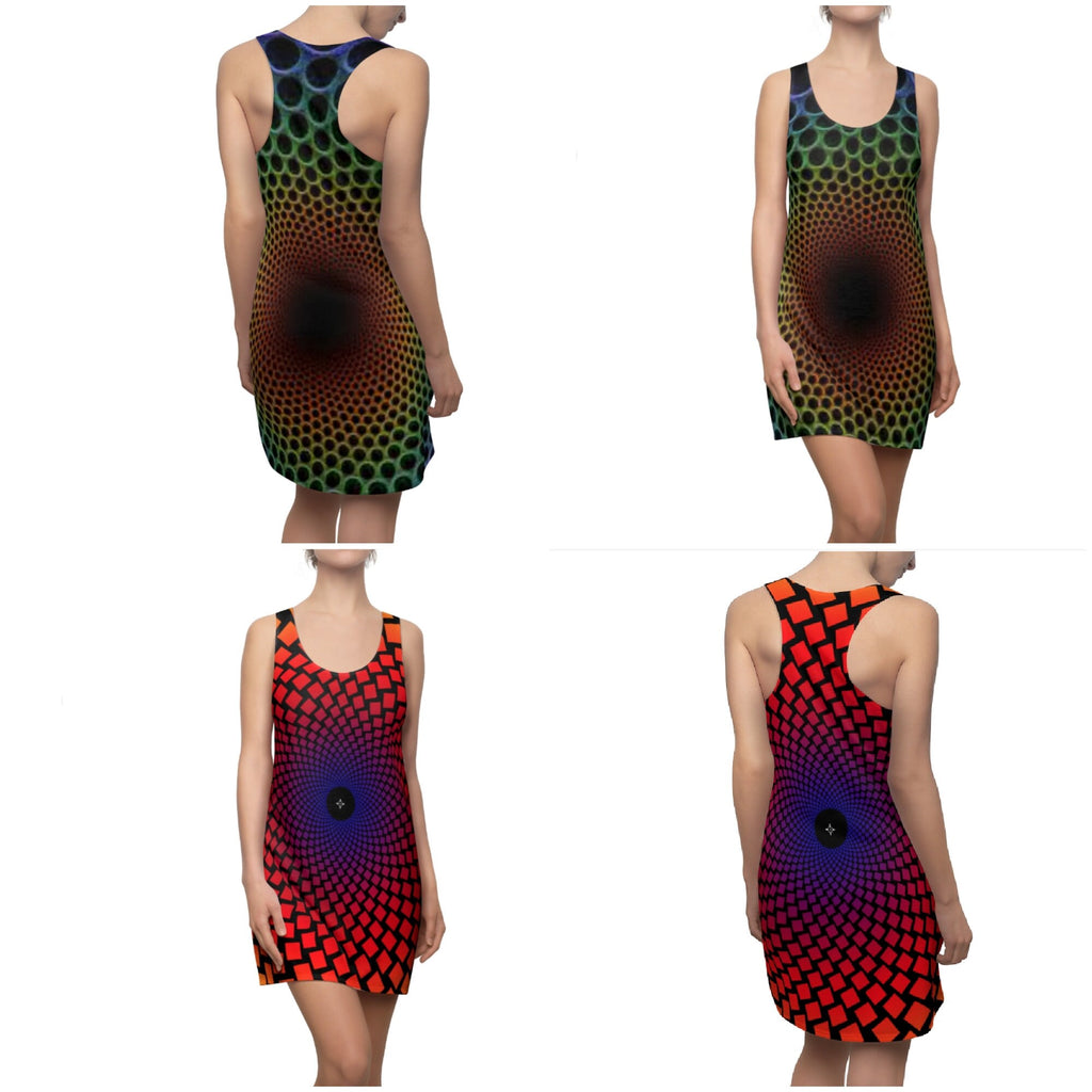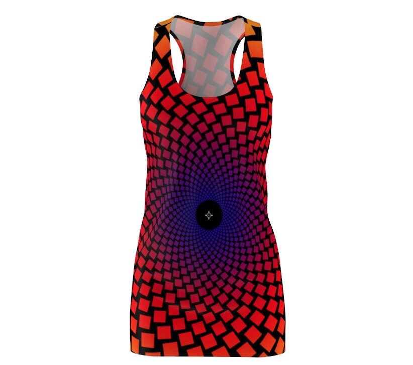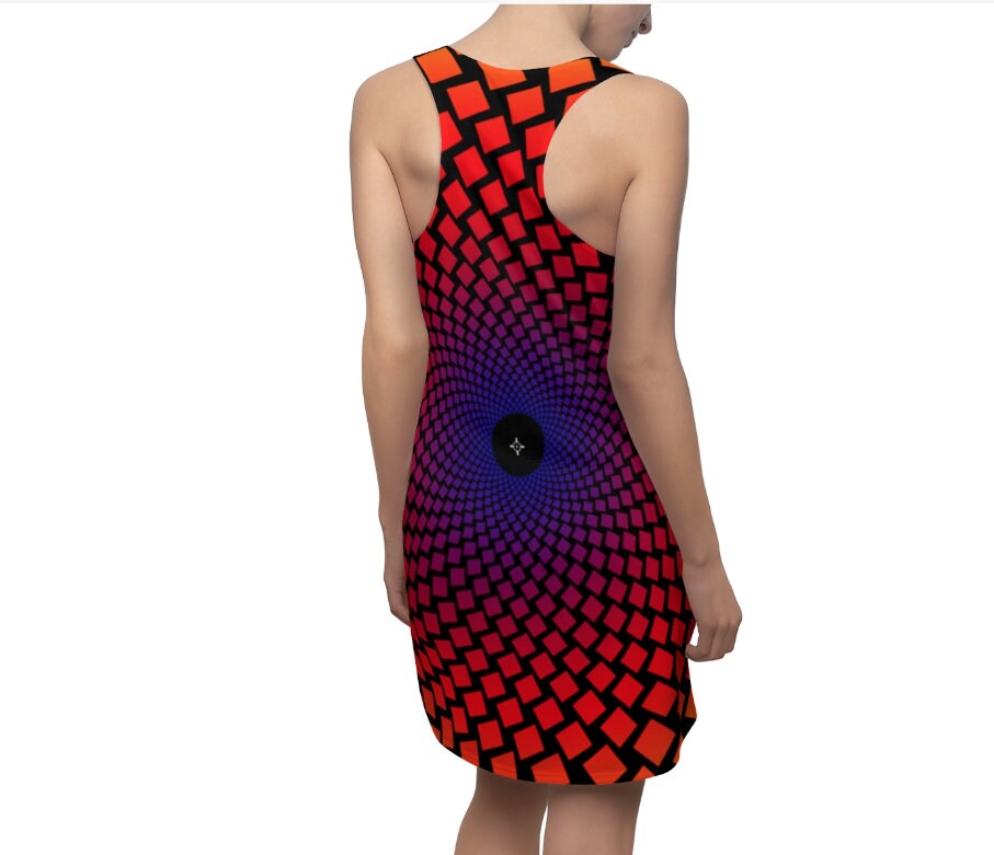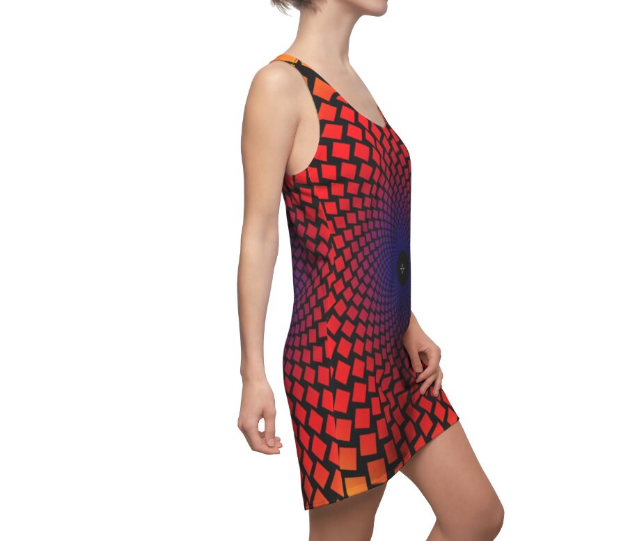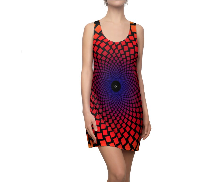 Red Radial Vortex Optical illusion Women's Racerback Dress, Feminine and stylish, yet really comfortable dress. This high quality 3D print tank dress is appealing from every angle. Inspired by the freedom of creativity, you will be an instant hit with this dress on.