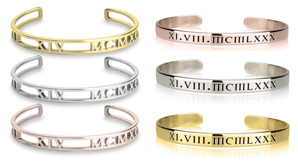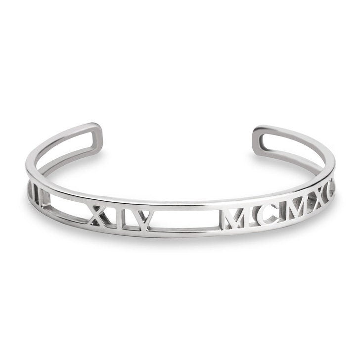 If you love our Roman Numeral Date Necklace, you will definitely love our new Roman Cuff Bracelet. Fits any wrist and personalized with the date or number you choose in roman numerals. Remember that special date that's so important and meaningful to you.